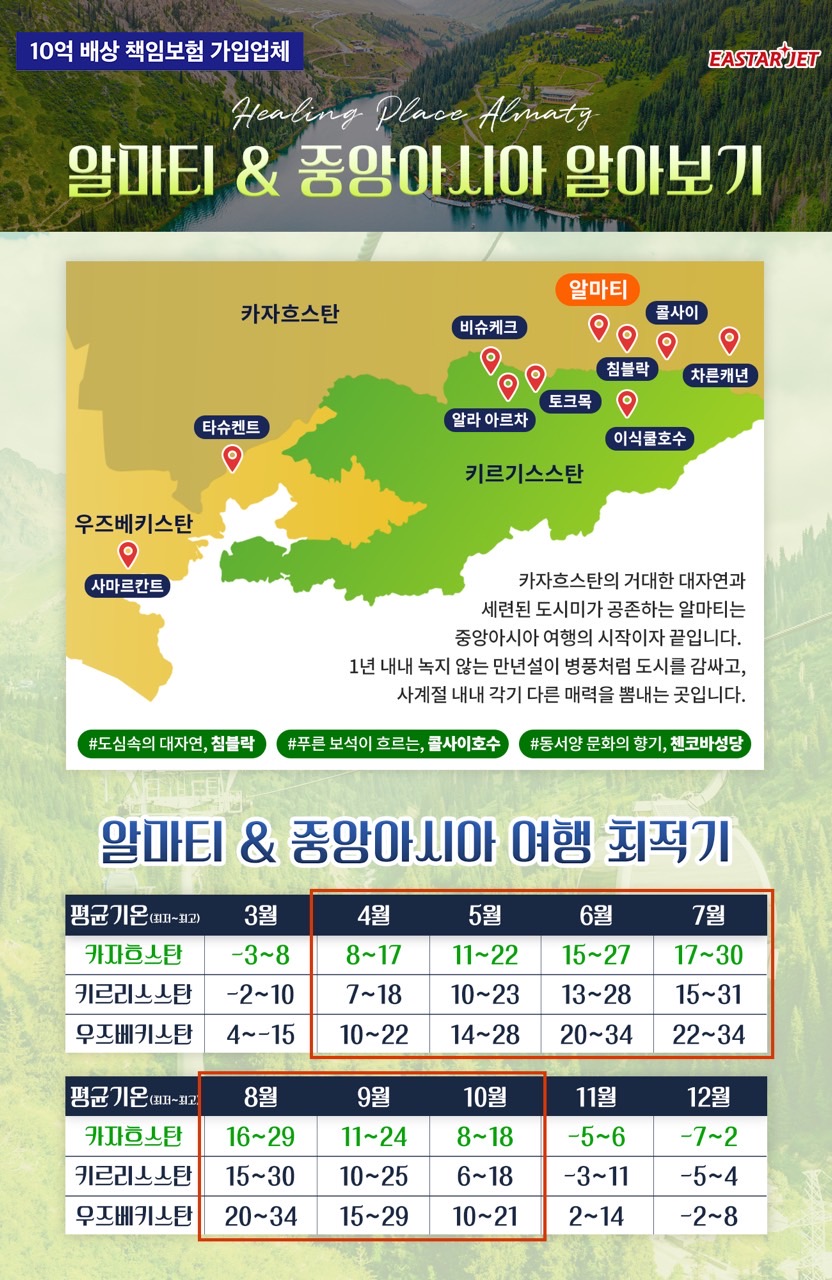 부산에서 바로, 카자흐스탄 대자연 속 알마티 힐링여행
