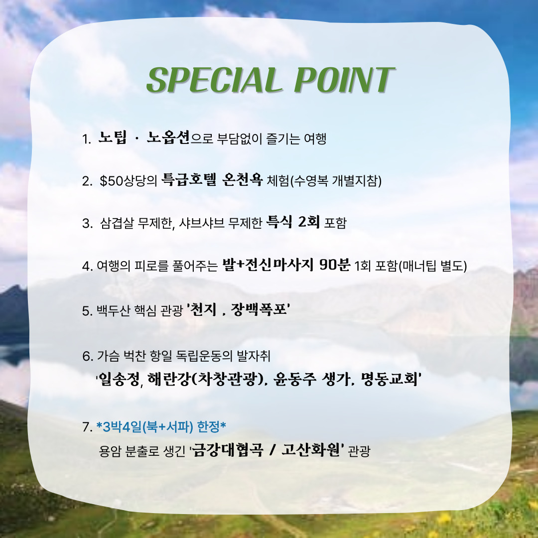 [부산출발] 완벽 백두산 (북+서파) 3박4일_노팁,노옵션